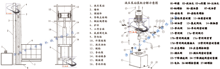 鏈條導(dǎo)軌式升降平臺分為單壁柱與雙壁柱兩種類型,平臺運行穩(wěn)定,升降平穩(wěn),操作簡單。升降方式為液壓控制,介質(zhì)為N32#或N46#高級抗磨液壓油,每側(cè)壁柱均為單液壓油缸雙鏈條傳動,并加裝